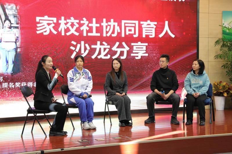 陈经纶中学分校利泽校区德育主任张雪燕分享《打破围墙的劳动课堂:构建“家校社”协同育人新样态》“劳动周”案例,展现了激活家庭“基础细胞”、链接社区“广阔天地”、联通学校“中枢神经”的清单式管理机制运行成效;“新时代好少年”于忻可的成长沙龙上,学生、家长、教师、社区代表同台讲述,生动演绎了“学校精准培养、家庭悉心守护、社区实践赋能”的协同育人暖心场景。