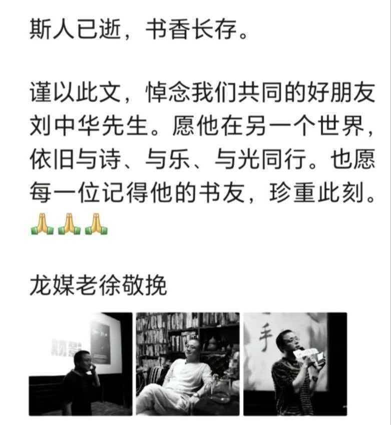 另一位发文悼念的徐先生告诉记者,14日上午他刚参加完刘老师的遗体告别仪式,听家属说刘老师是突发心梗去世,“我和刘老师是20多年的老朋友了,心情很沉重,一时也不知道说啥好。”