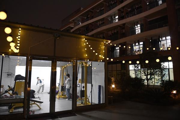 12月2日,江西省南昌市青山湖大道,一所独栋独院的备考中心,在简易健身房里锻炼的年轻人。