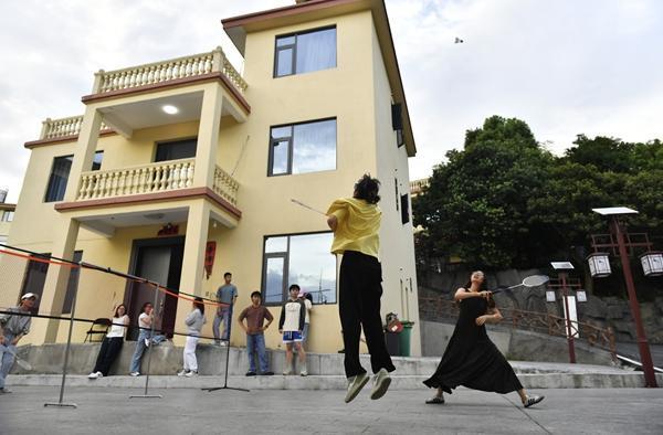 8月14日,江西省南昌市经开区上风景村,备考生们晚饭后聚在一起打羽毛球,这是他们一天中难得的轻松时刻。