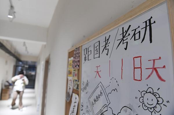 12月2日,江西省南昌市青山湖大道,一所独栋独院的备考中心,一块倒计时牌上的“国考”倒计时已被擦去,考研倒计时还有18天。
