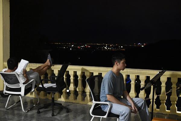 8月14日晚,江西省南昌市经开区上风景村,备考生在阳台上复习,远处的山下是繁华的南昌市区。上风景村位于南昌市西北郊的梅岭国家森林公园中,距南昌市区十几公里,是当地小有名气的“考研村”。安静的环境是不少备考生选择这里的原因。